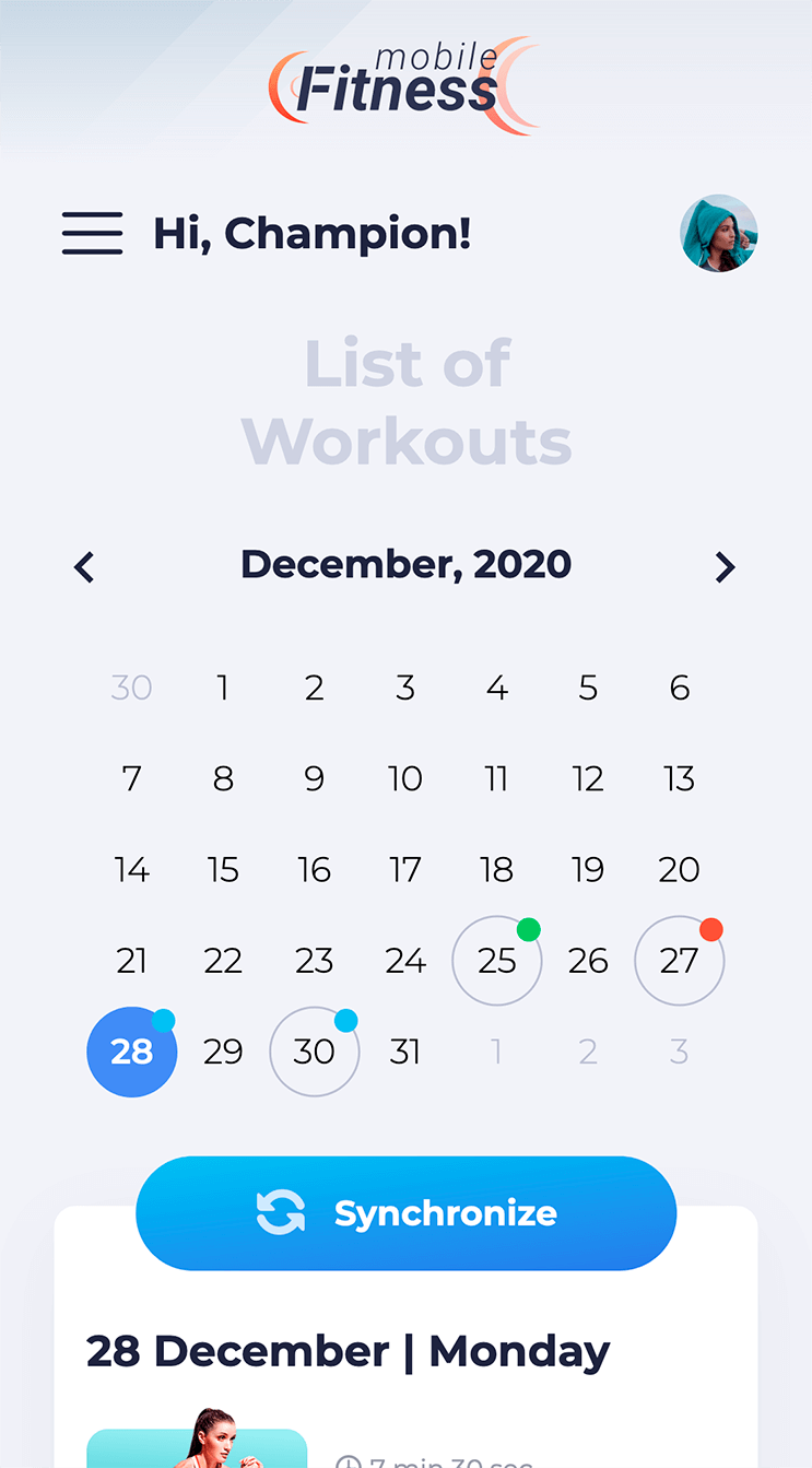 To be reminded of your upcoming workouts on time, the Mobile.Fitness Smart Calendar can be synchronised with your mobile device calendar.