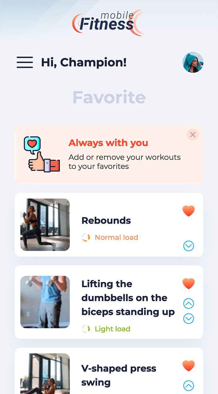 To ensure you always have your favourite workouts at hand, simply add them to your Favourites.